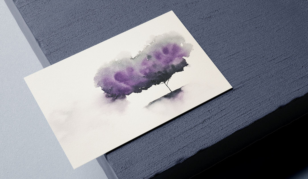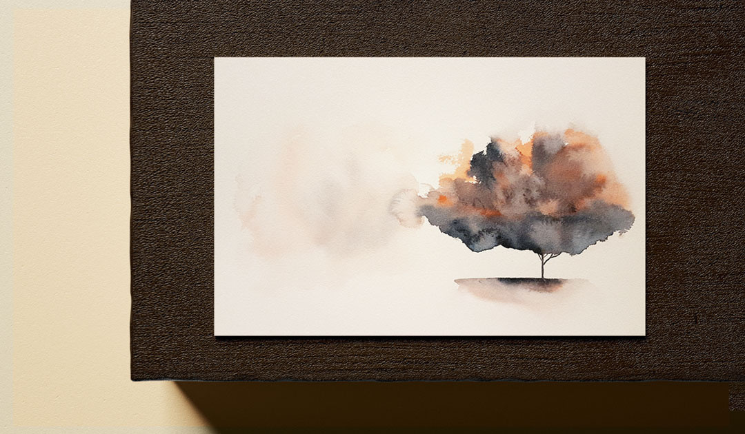 Commemorative illustration (corporate). 70 watercolor trees in A4 and A2 formats, later composed by ink names and delivered individually, in a bag (also with the art created specifically for this item).