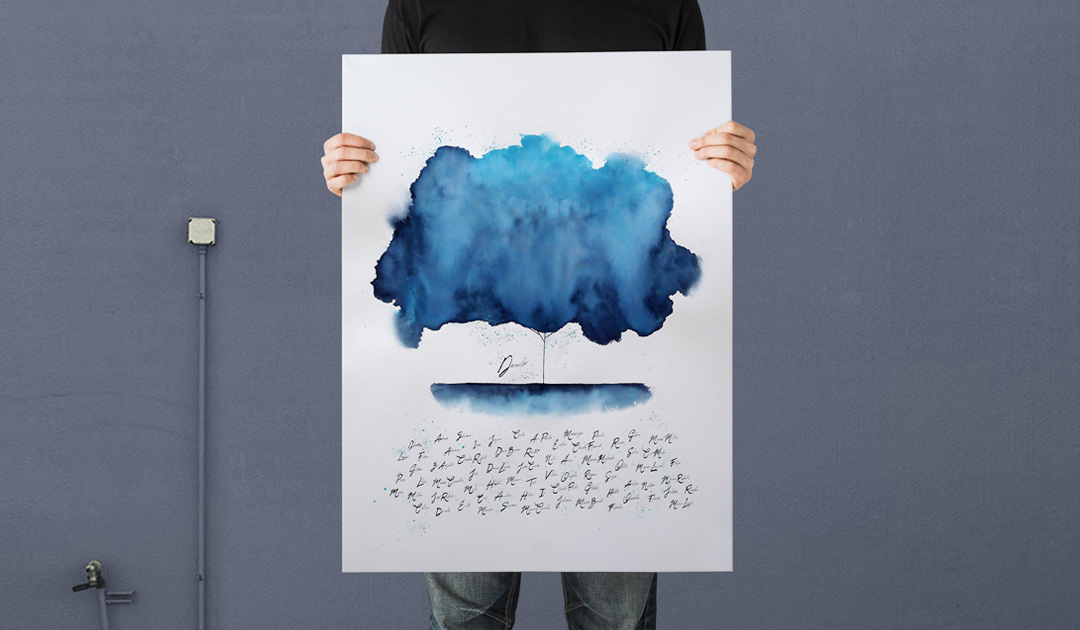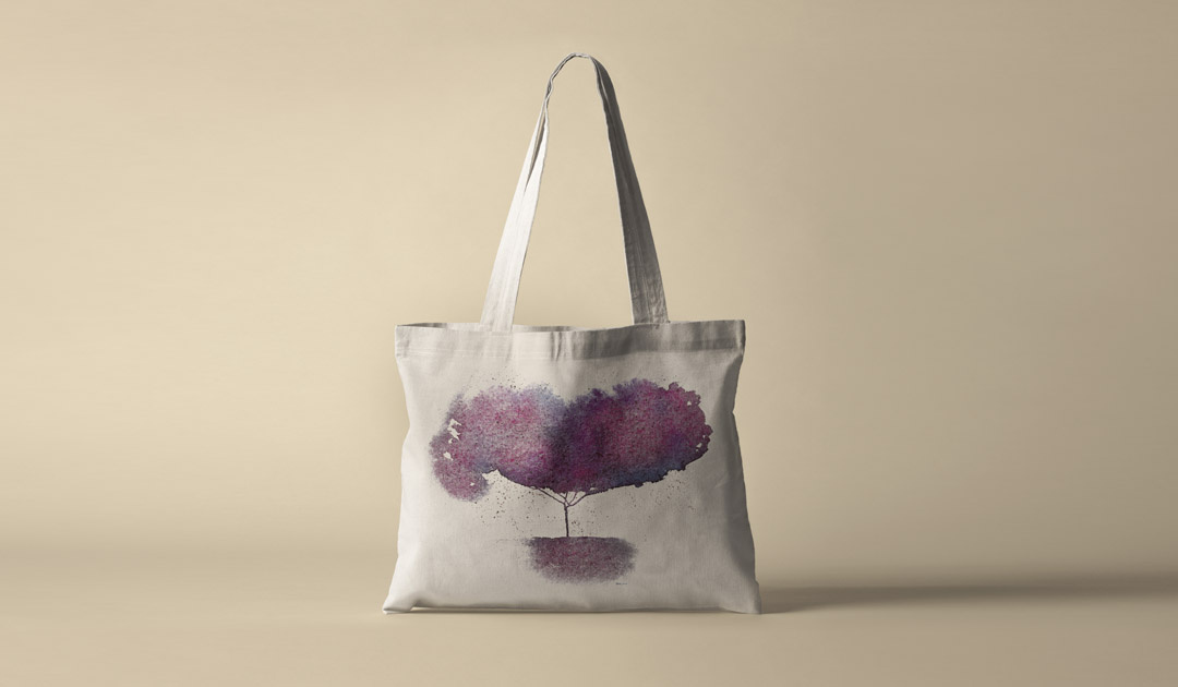 Ilustração comemorativa (corporativo) 70 árvores em aquarela formatos A4 e A2, compostas posteriormente por nomes em nanquim e entregues individualmente, dentro de uma sacola (também com a arte criada especificamente para este item).