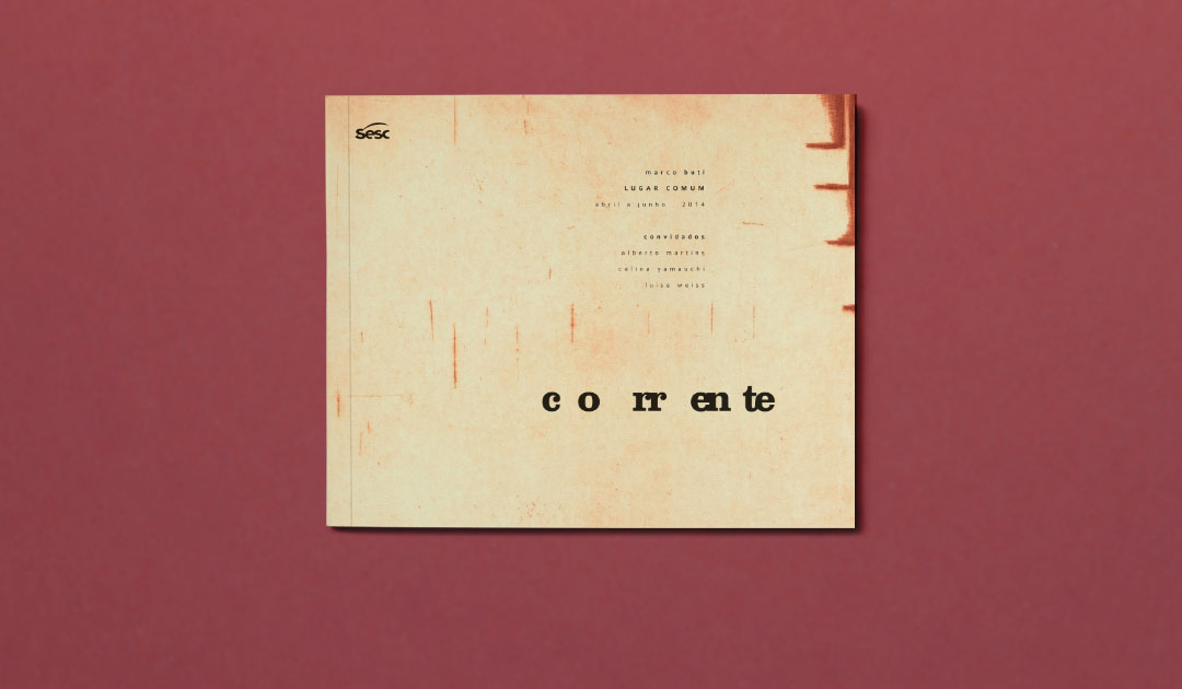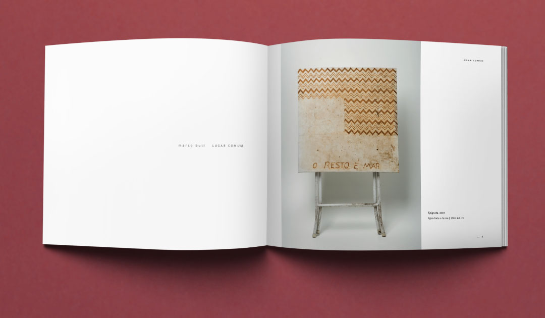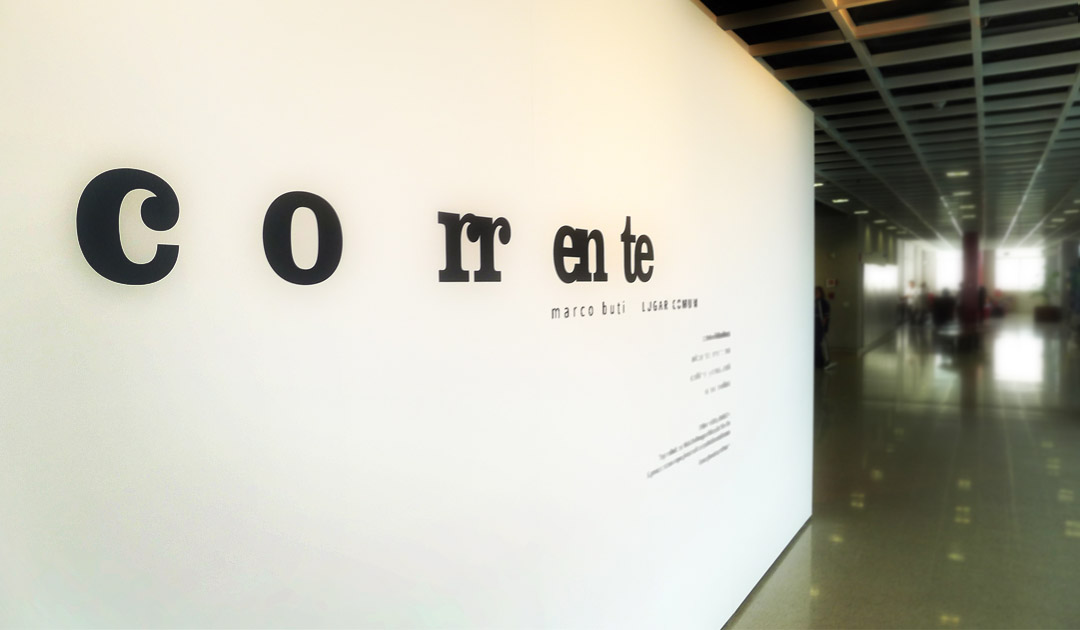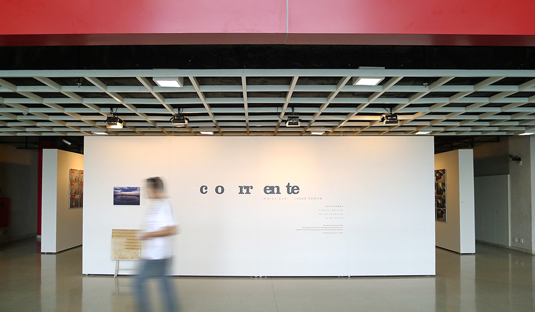 Exhibition "Corrente: Marco Buti – Lugar Comum". Creation of visual identity, logotype, graphic design for preexisting exhibition space and catalog.